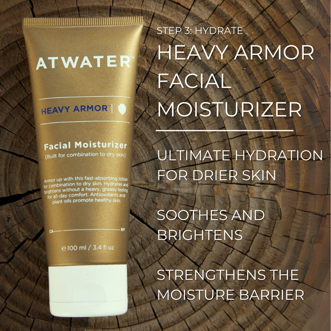 Arctic Horizon is winter discipline in a box: a crisp white steamer-trunk that feels like frost-clean mornings, express trains cutting through cold air, and ocean decks dusted with salt. Built for purposeful travel and the season of departures and arrivals, it’s designed for men who like their kit tight, their routine simple, and their results consistent. Inside you’ll find the three-step system tuned for dry, cold conditions. Skin Armor Face Scrub clears buildup and smooths rough texture so actives land. Eye Armor targets fatigue to keep the eye zone firm, focused, and camera-ready. Heavy Armor Facial Moisturizer finishes strong with rich, reparative hydration that helps fortify your barrier against dry air, wind, and long days on the move. The set is rounded out with bonus samples of Smooth Target Shaving Cream and our Mineral Sunscreen, so your morning is covered from shave to defend. Limited edition, gift-ready, and built for performance, Arctic Horizon keeps your face mission-ready from first frost to last toast.